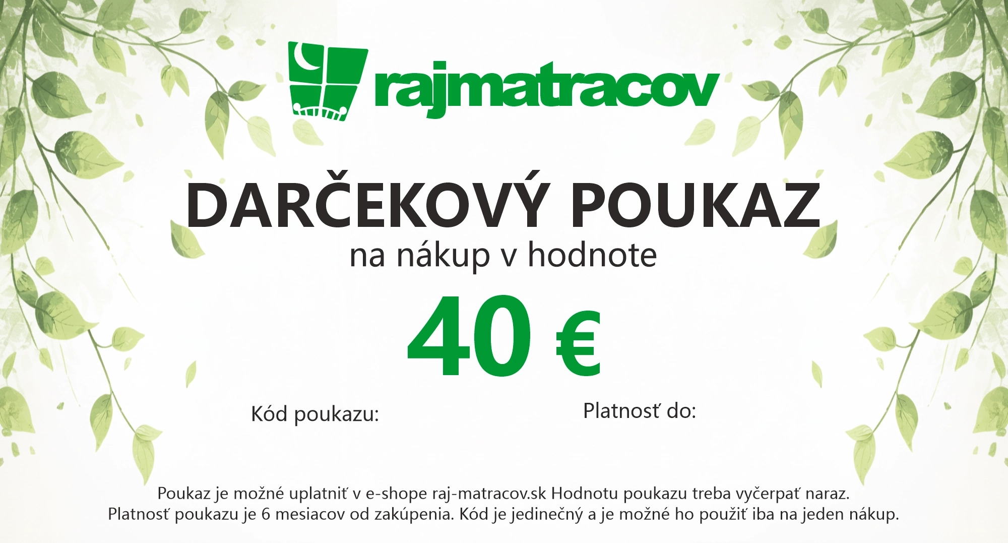 Stačí vložiť unikátny kód z poukazu do poľa „Poznámka pre predajcov“ v nákupnom košíku na www.raj-matracov.sk