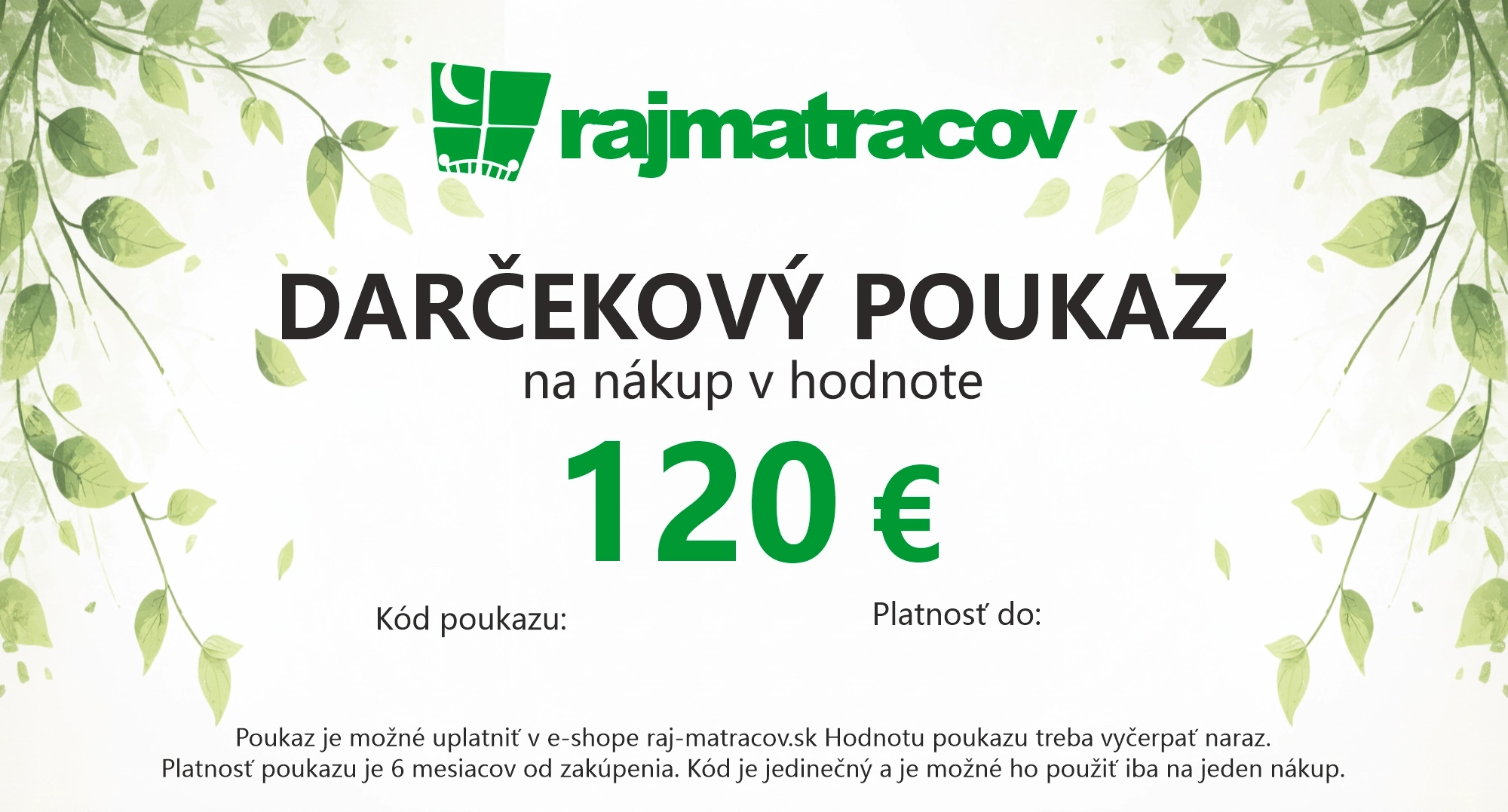 Stačí vložiť unikátny kód z poukazu do poľa „Poznámka pre predajcov“ v nákupnom košíku na www.raj-matracov.sk