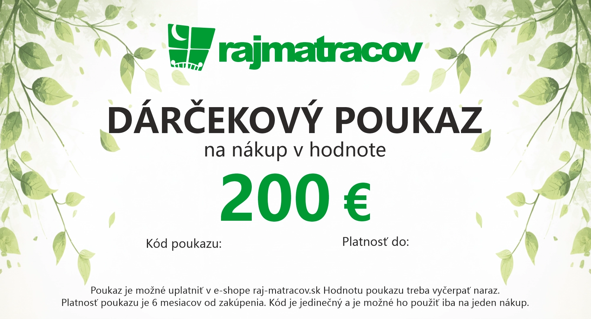 Stačí vložiť unikátny kód z poukazu do poľa „Poznámka pre predajcov“ v nákupnom košíku na www.raj-matracov.sk