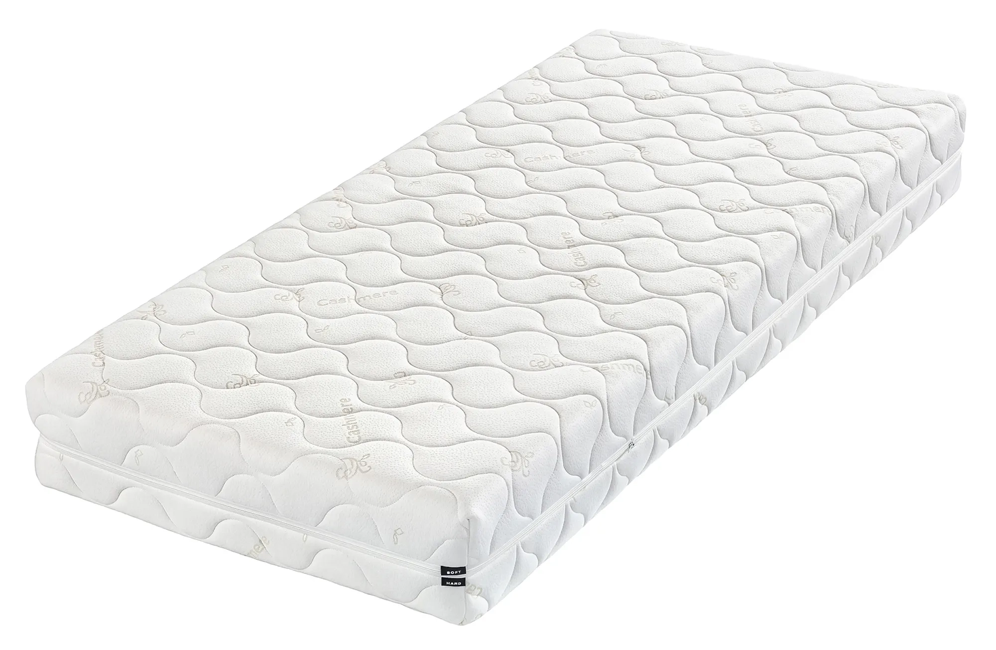 Hodvábne jemný poťah Kašmír s vysokým podielom prírodných vlákien. Vďaka vysokému podielu viskózy a kašmírového vlákna ponúka vynikajúce termoregulačné schopnosti pre komfortný spánok a obmedzenie potenia. Veľmi odolná, pevná a príjemne mäkká látka s klimatizačným prešívaním navyše obmedzuje nabíjanie statickou elektrinou pre pokojný spánok.