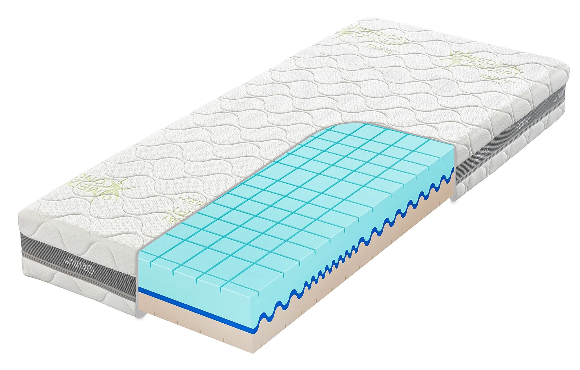 Vysoký, obojstranný, ortopedický zónový matrac pre veľkých i malých, ťažké aj ľahké. Ponúka 4 komfortné pocity ležania, zdravotnú profiláciu na oboch stranách, hybridnú konštrukciu bez lepidiel a multifunkčný prateľný poťah s vysokým podielom prírodných vlákien as odľahčujúcou pamäťovou penou. Tuhší matrac na ochranu kľbov a chrbta.